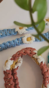 Introducing our Macrame Lanyard with Handwoven Daisy Flowers and Lobster Keyring – a delightful fusion of boho elegance and whimsical charm.