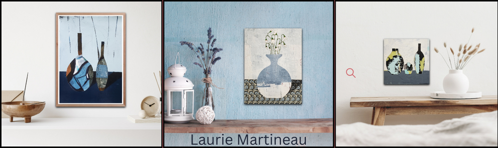 Laurie's current work has been an exploration of vessels in an abstract primitive form using masking and Japanese Chiyogami paper to create simple compositions rich with texture. Often these compositions are created from previous paintings using masking to form an image. Using my professional experience working with architecture, real estate and design, I blend my love for composition and balance with abstract artwork, creating modern and contemporary artwork that work in many different styles of homes and commercial properties.