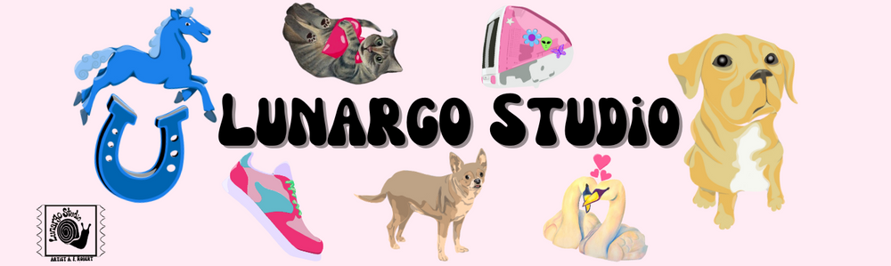 All Lunargo Studio pieces feature her original designs, created using colored pencil, watercolor and acrylic paint, ink, as well as digital tools like Canva and Procreate.